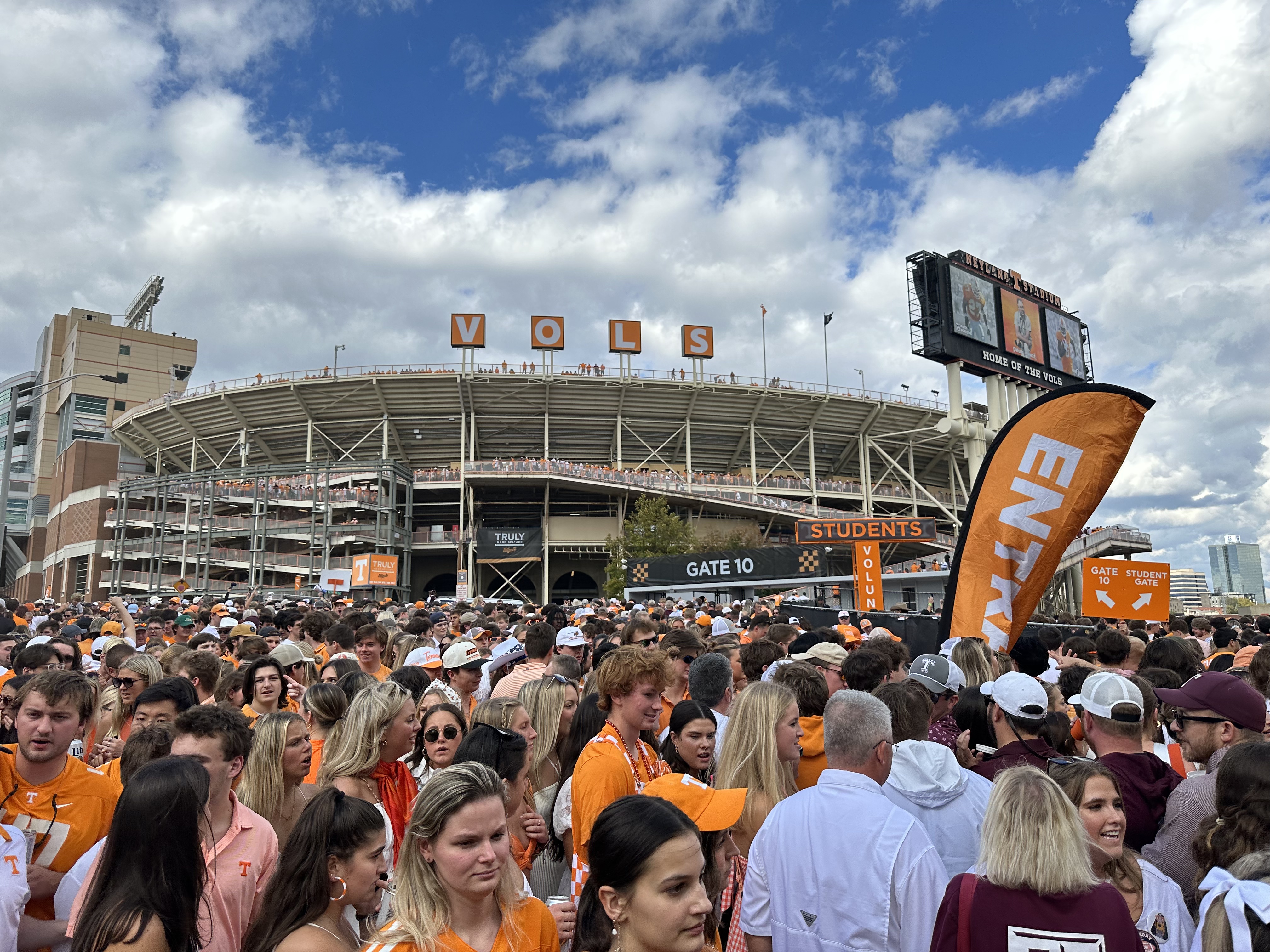 Students waiting outside of Neyland Stadium before the Tennessee – Texas A&M game. (Hayden Formica/ UTK Student Journalist)