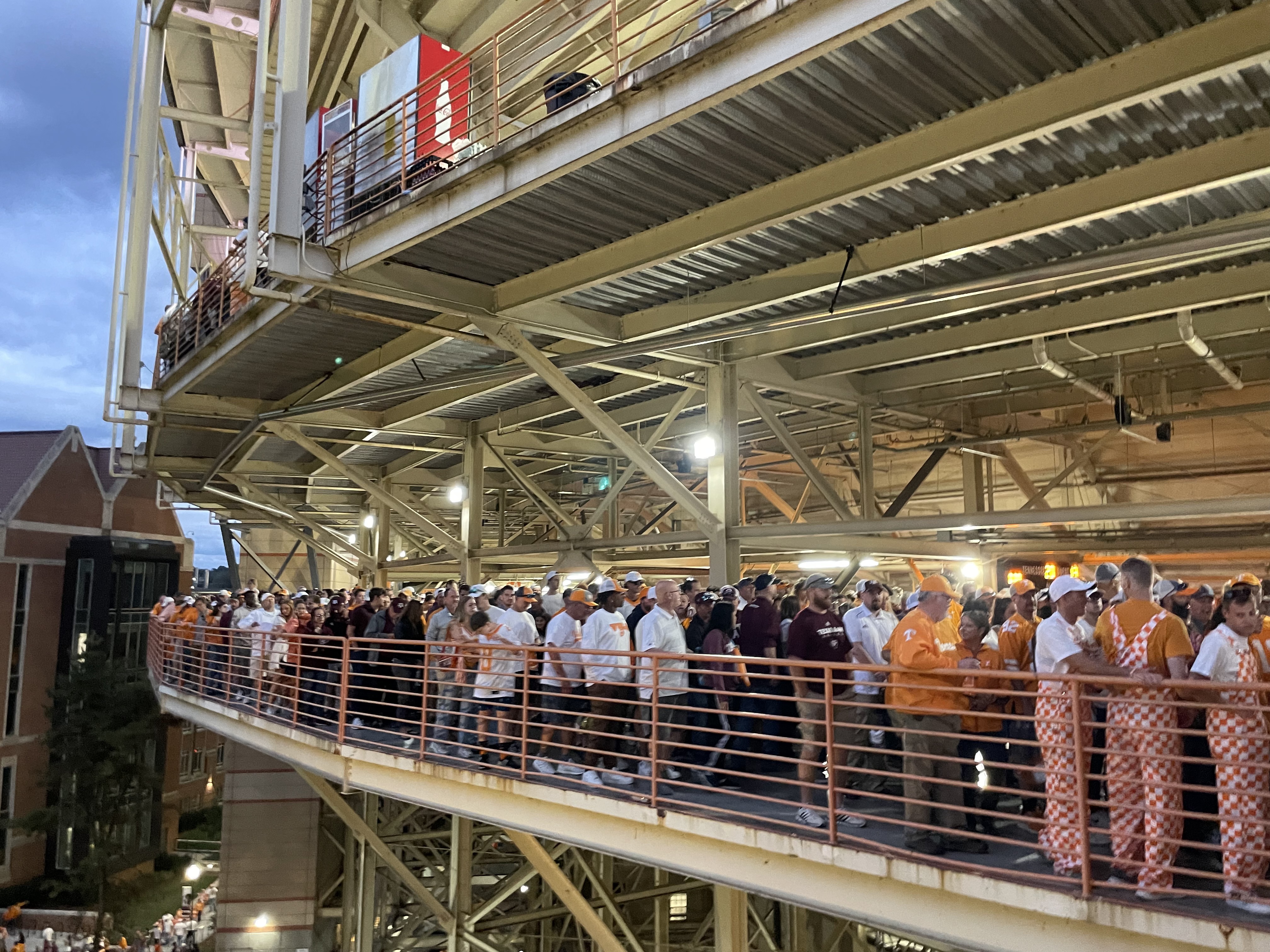 Fans standing on a balcony at Neyland Stadium. (Hayden Formica/ UTK Student Journalist)