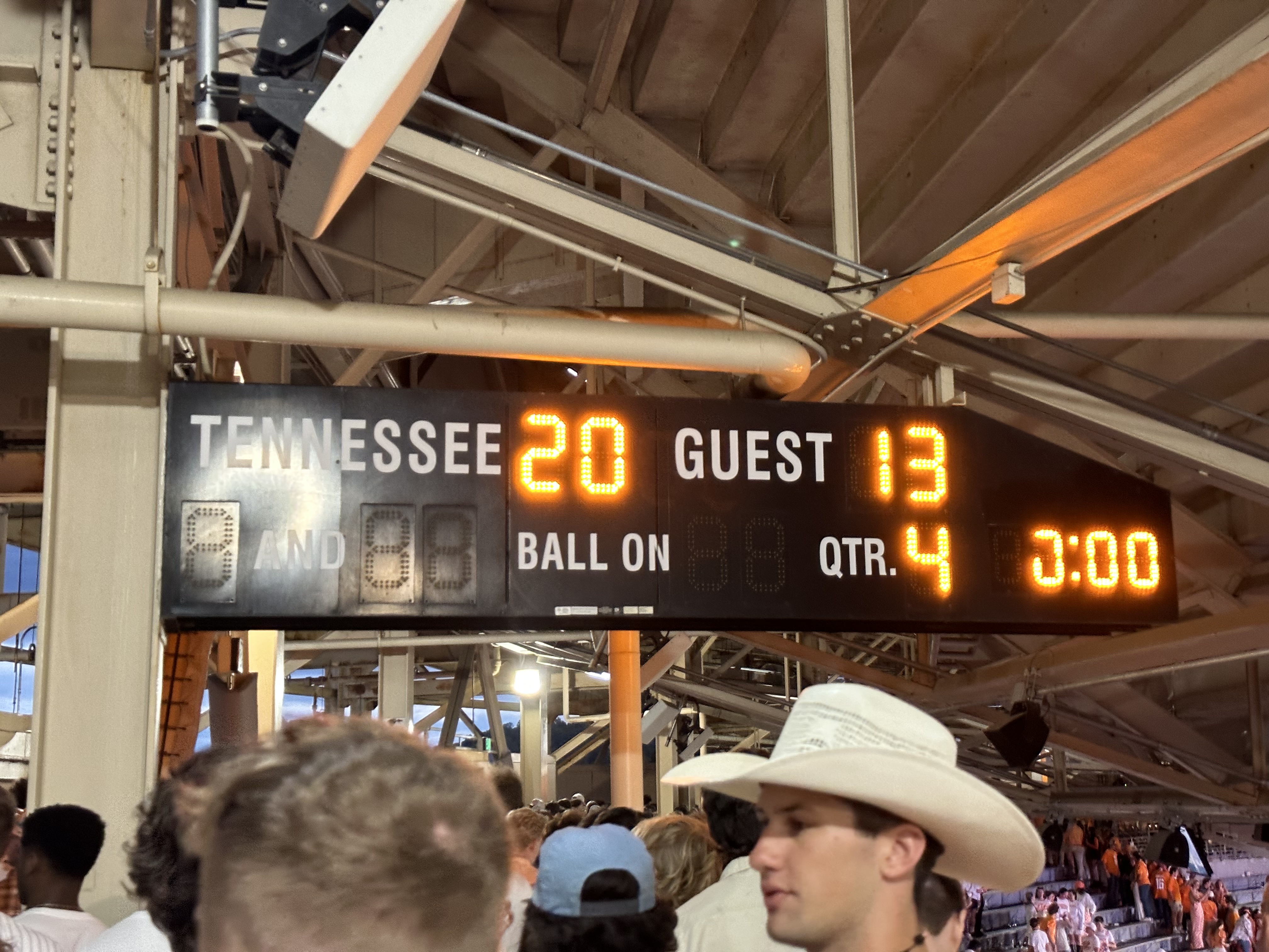 Scoreboard showing final score of the game. (Hayden Formica/ UTK Student Journalist)